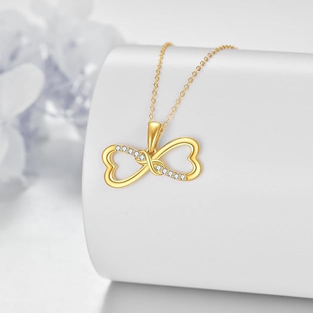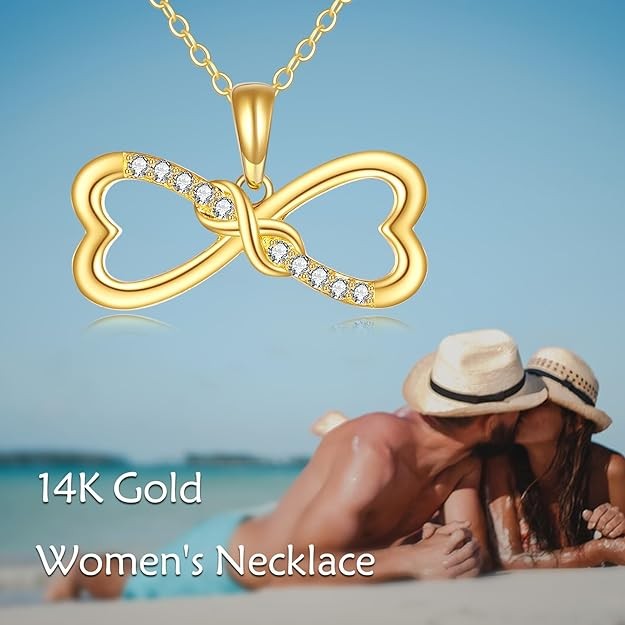 14K Solid Gold Infinity Necklace for Women Heart Infinity Symbol Necklace Jewelry for Women Girls
