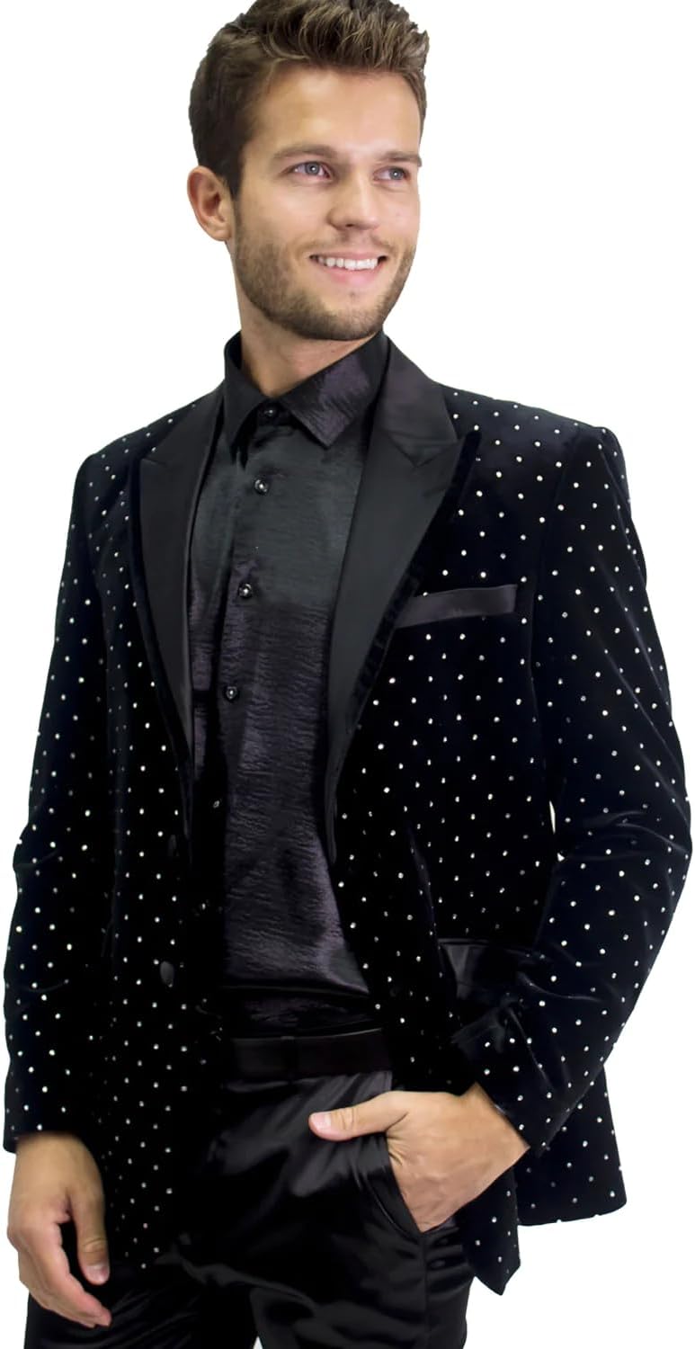Barabas Men's Rhinestone Notch Lapel Black Blazer BL3020
