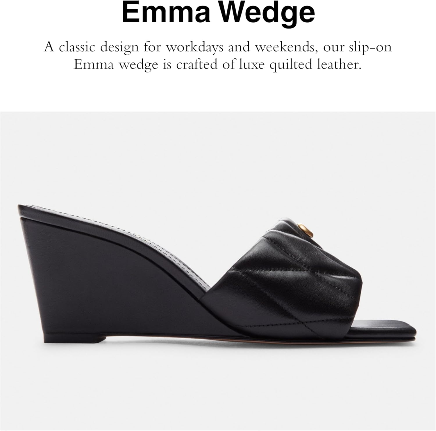 Editor's Notes: A classic design for workdays and weekends, our slip-on Emma wedge sandal has a comfortable 2 3/4" heel & is crafted of smooth leather