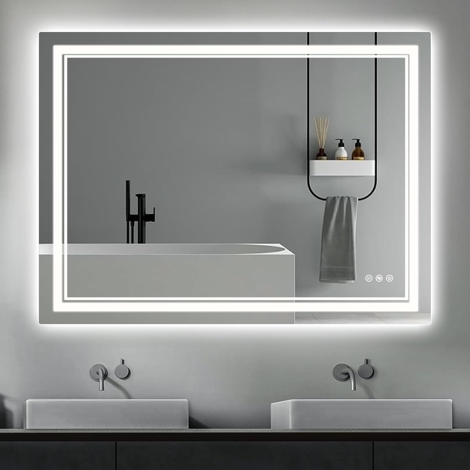 ENJOYBASICS 40"x30" LED Bathroom Mirror with Front and Backlit, Vanity Mirror with Stepless Dimmable Double Lights, Large Wall Mirror, Anti-Fog, Memory, Colors Adjustable (Horizontal/Vertical)