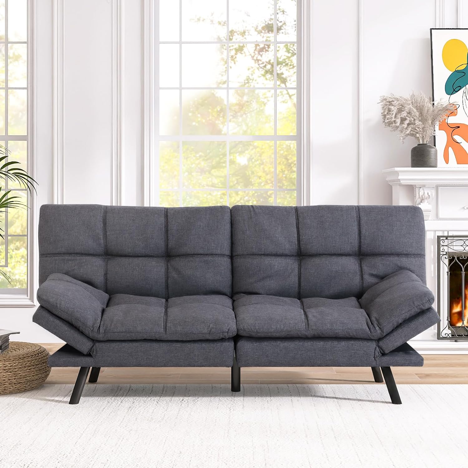 Convertible Futon Sofa Bed Couch,Memory Foam Futon Sofa,Loveseat Sleeper Sofa Bed,Small Splitback Linen Fabric Modern Sofa for Living Room,Office,Apartment,Pure Grey