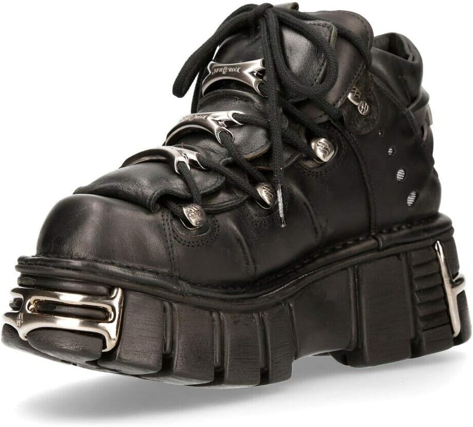 New Rock 106 S1 Men's Goth Punk Black Metallic Platform Fashion Ankle Boots