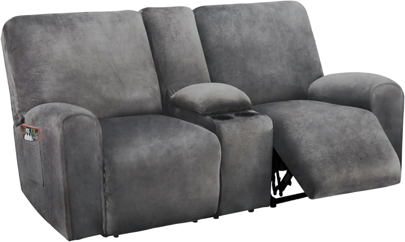HIGH QUALITY MATERIAL: This innovated PATENTED 8 Piece love seat reclining 2 seater cover is crafted from luxurious velvet plush fabric, and is very soft, comfortable and sturdy ULTIMATE DECORS Love seat covers are as close to custom.