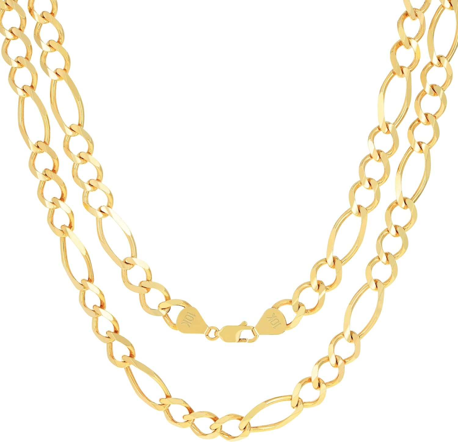 Item display length 18 inches Item width 9.5 millimeters Material Gold Metal type Yellow Gold Clasp type Lobster Chain type Figaro